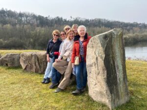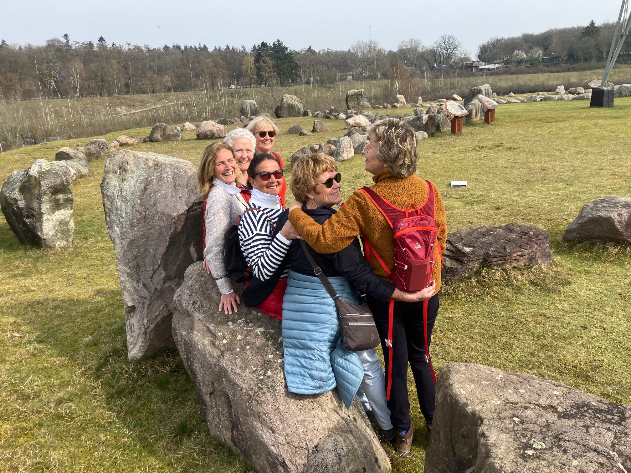 Vanaf het Zwerfsteneneiland vertrokken de dames, met een interessante, leerzame beschrijving, voor een mooie, gevarieerde wandeling door het gebied Stameren. Klimmen, dalen, door bos, langs grafheuvels, over heide, langs smeltwaterdal, waar zij na ±1 uur werden ontvangen op locatie ‘Heideheuvel’, voor een rijke lunch in huiselijke sfeer.